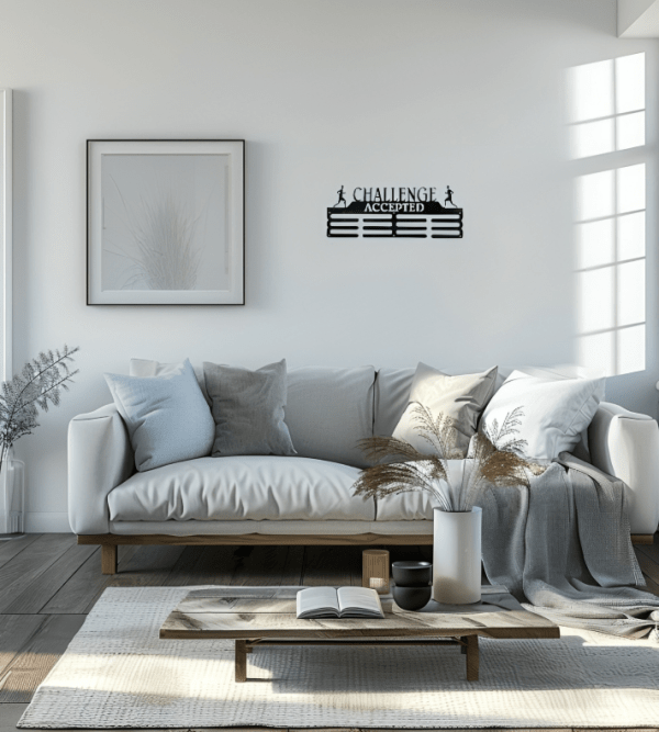 Elevate your space with our “Challenge Accepted” medal hanger, measuring 60×22 cm. Designed for those who thrive on overcoming obstacles, this motivational piece showcases the empowering phrase “Challenge Accepted” prominently, inspiring you to push your limits every day.